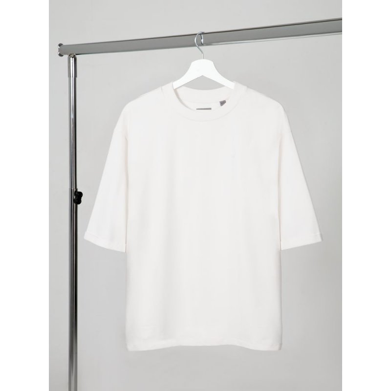 Футболка унисекс свободного кроя со спущенным плечом и смещенными плечевыми швами.