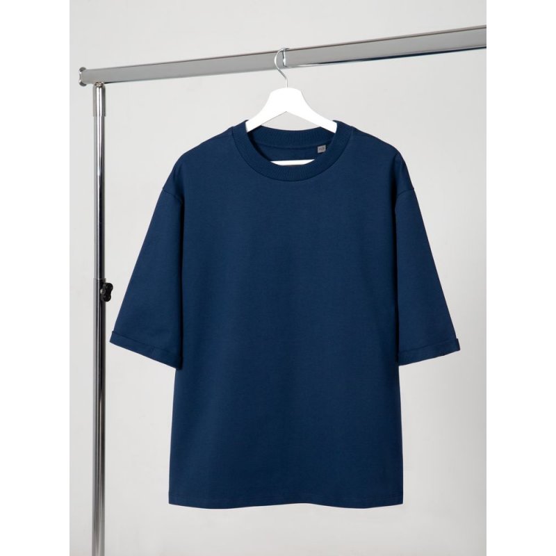 Футболка унисекс свободного кроя со спущенным плечом и смещенными плечевыми швами.