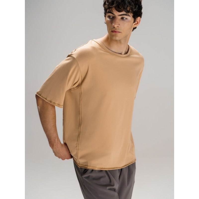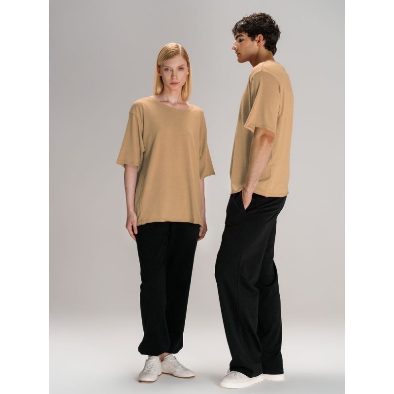 Футболка унисекс свободной посадки Vozduh создана для тех, кто следит за трендами и ценит комфорт. Необработанные края рукавов и низа изделия добавляют ему оригинальности и легкой небрежности, а боковые вставки создают притягательный летящий силуэт.
