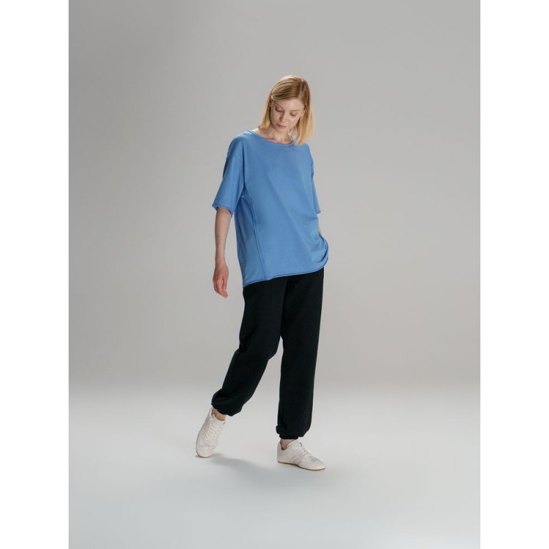 Футболка унисекс свободной посадки Vozduh создана для тех, кто следит за трендами и ценит комфорт. Необработанные края рукавов и низа изделия добавляют ему оригинальности и легкой небрежности, а боковые вставки создают притягательный летящий силуэт.