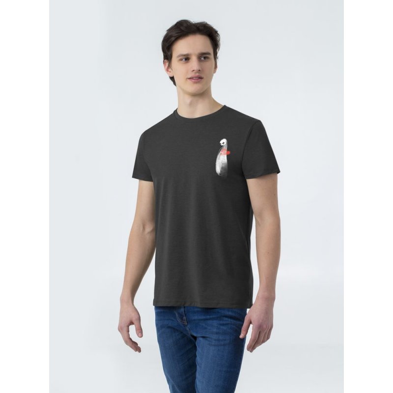 Кроеная футболка (с боковыми швами). Приталенная облегающая модель, зауженный книзу рукав, укрепляющая тесьма по вороту, воротник связан резинкой с эластаном.