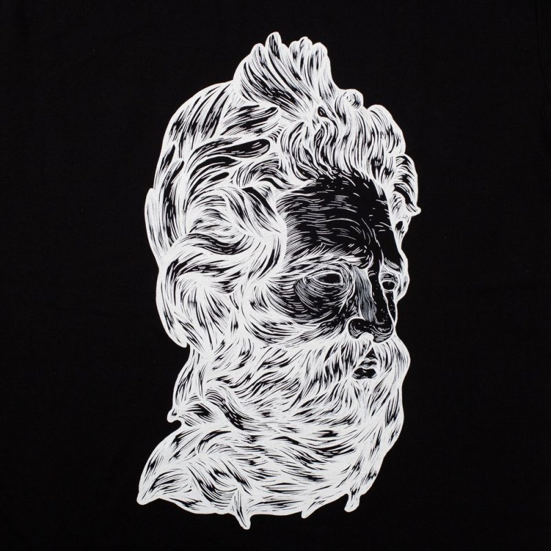 Монохромный принт Tatoo наоборот. Инверсия — актуальный визуальный прием, который активно используется и в дизайне одежды. Получается изображение, напоминающее гравюру в технике «граттаж».