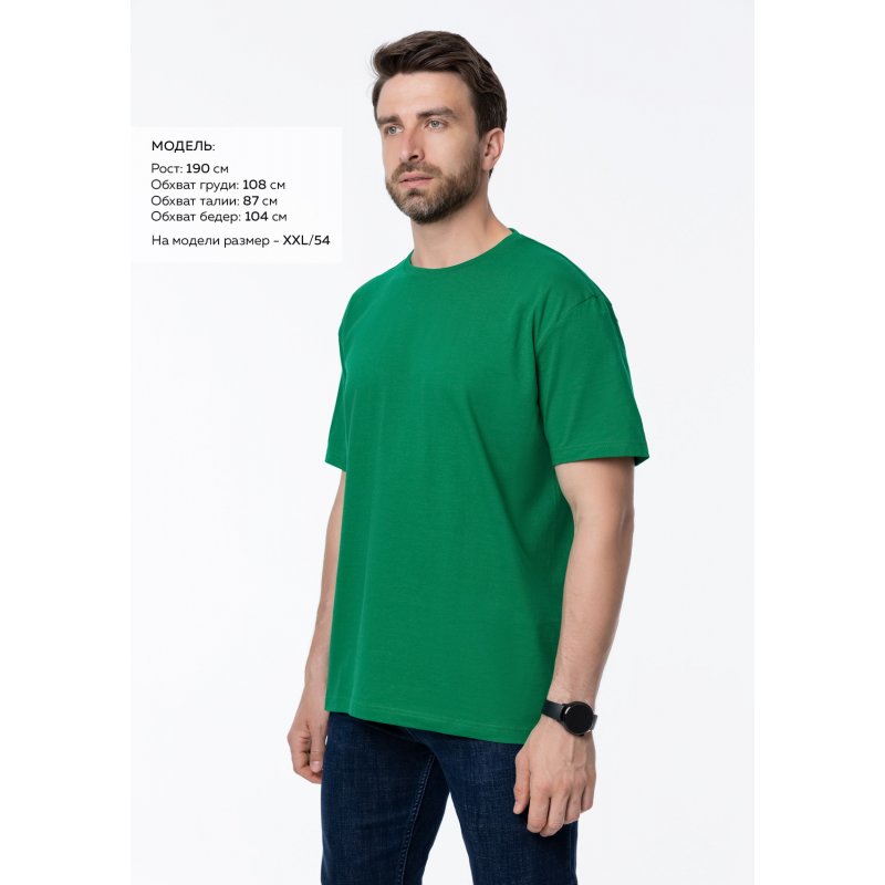 Размер мужской футболки: XXL/54. Параметры модели: рост 190 см.; обхват груди 108 см.; обхват талии 87 см.; обхват бедер 104 см.