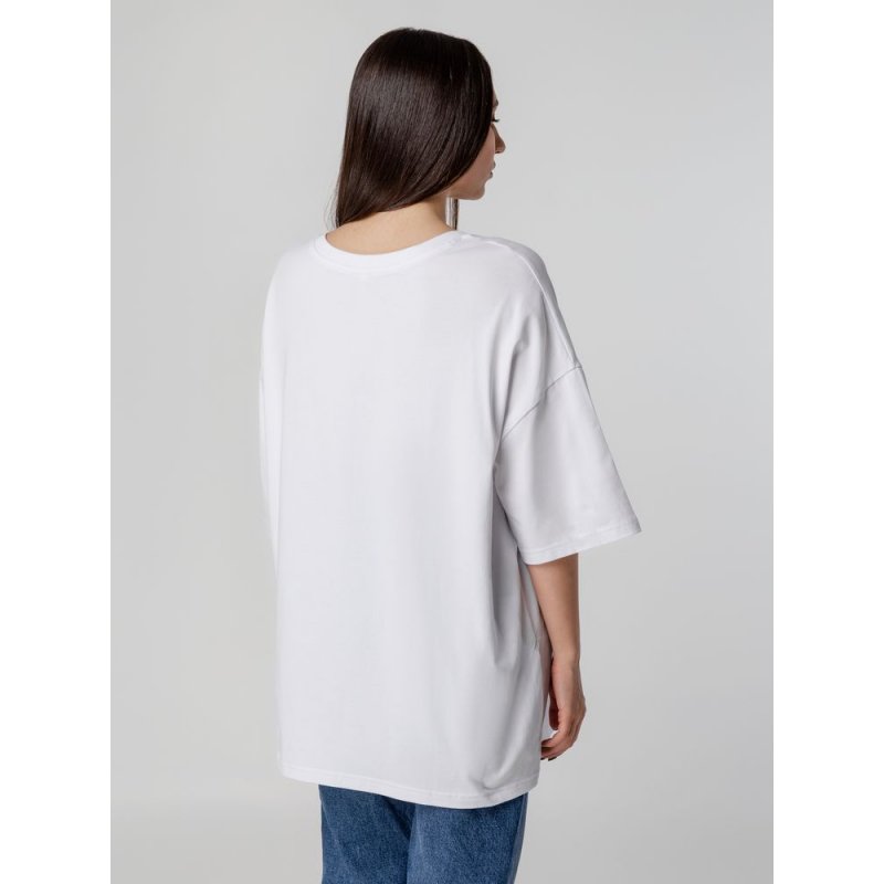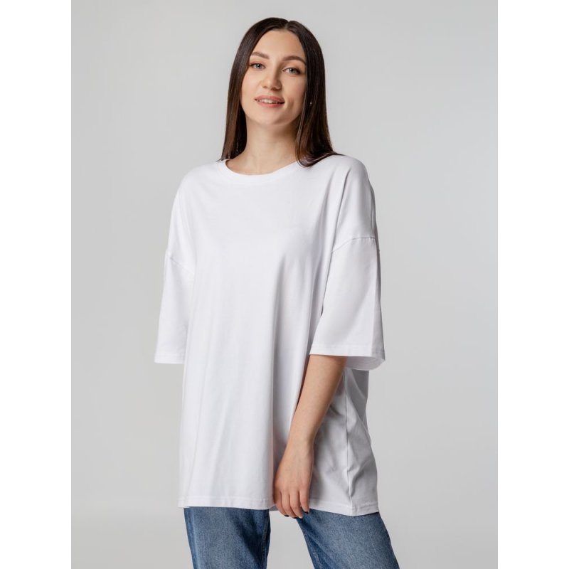 Объемная кроеная футболка с удлиненным рукавом из гребенного хлопка с эластаном не стесняет движений и создает модный расслабленный силуэт.