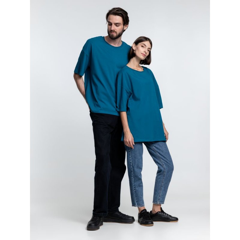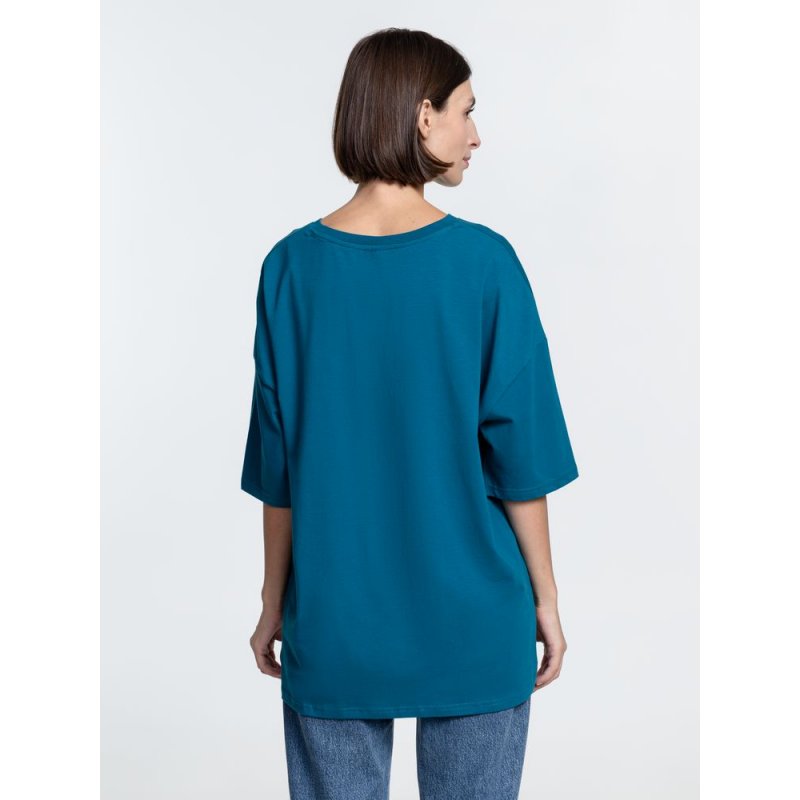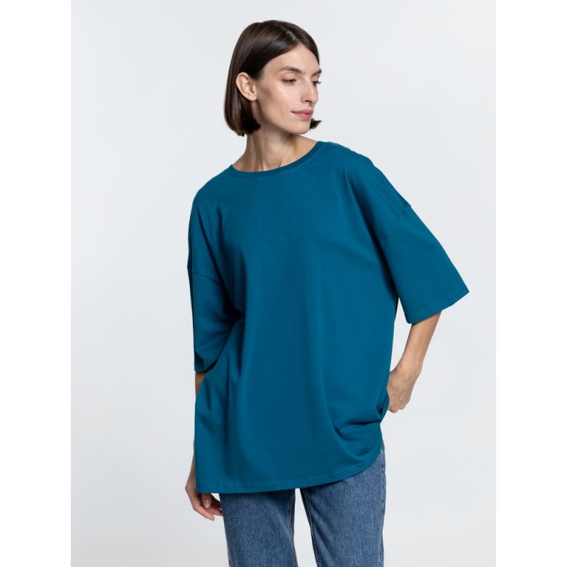 Объемная кроеная футболка с удлиненным рукавом из гребенного хлопка с эластаном не стесняет движений и создает модный расслабленный силуэт.