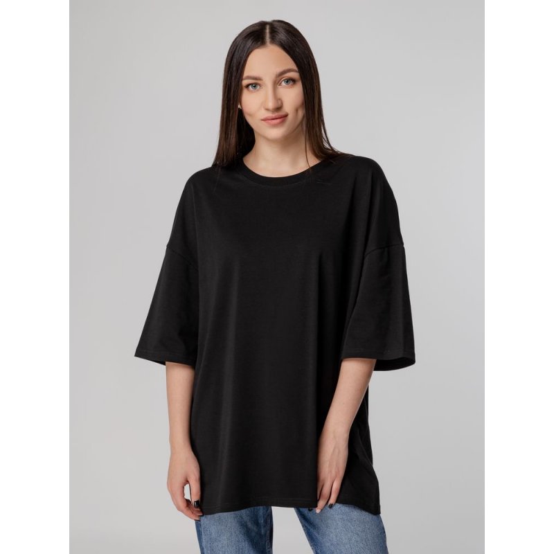 Объемная кроеная футболка с удлиненным рукавом из гребенного хлопка с эластаном не стесняет движений и создает модный расслабленный силуэт.