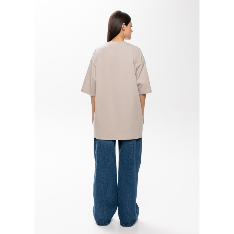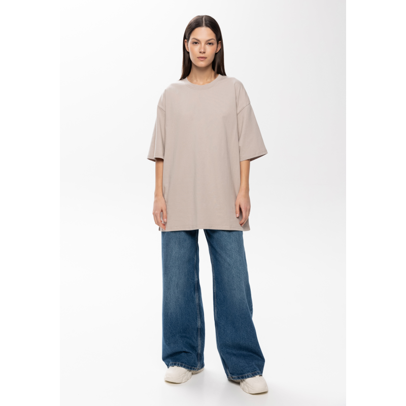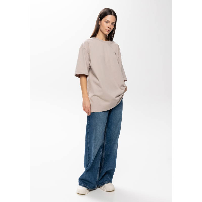Универсальная футболка силуэта-oversize с округлым воротом и спущенной линией плеча.