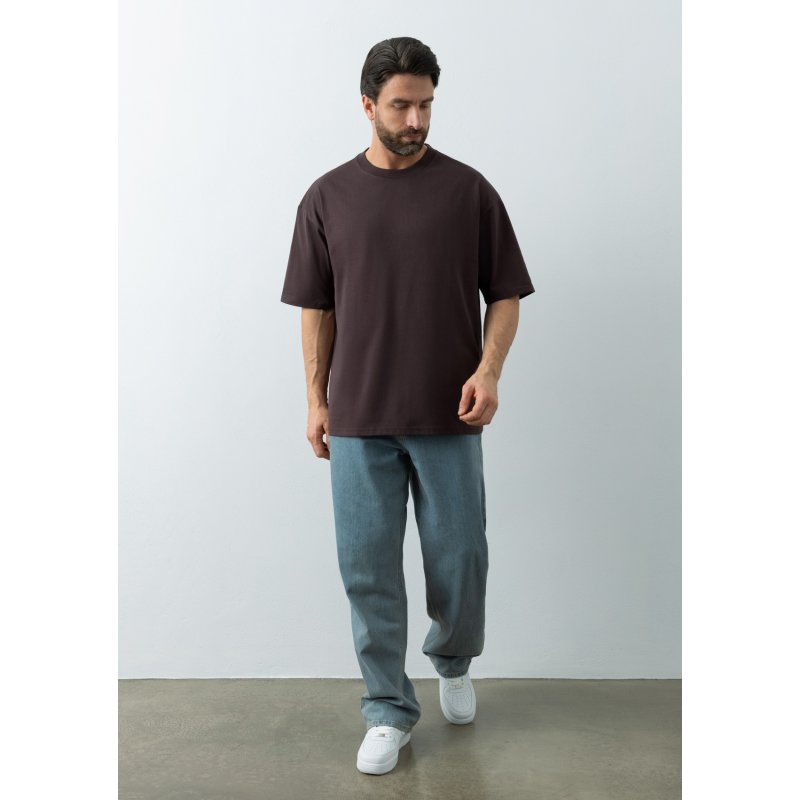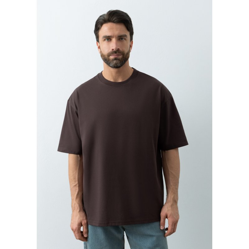 Универсальная футболка силуэта-oversize с округлым воротом и спущенной линией плеча.