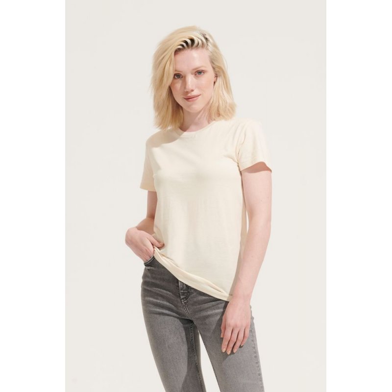 Бесшовная футболка унисекс выполнена из смеси обычного хлопка с переработанным.