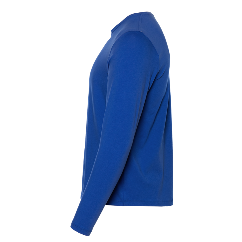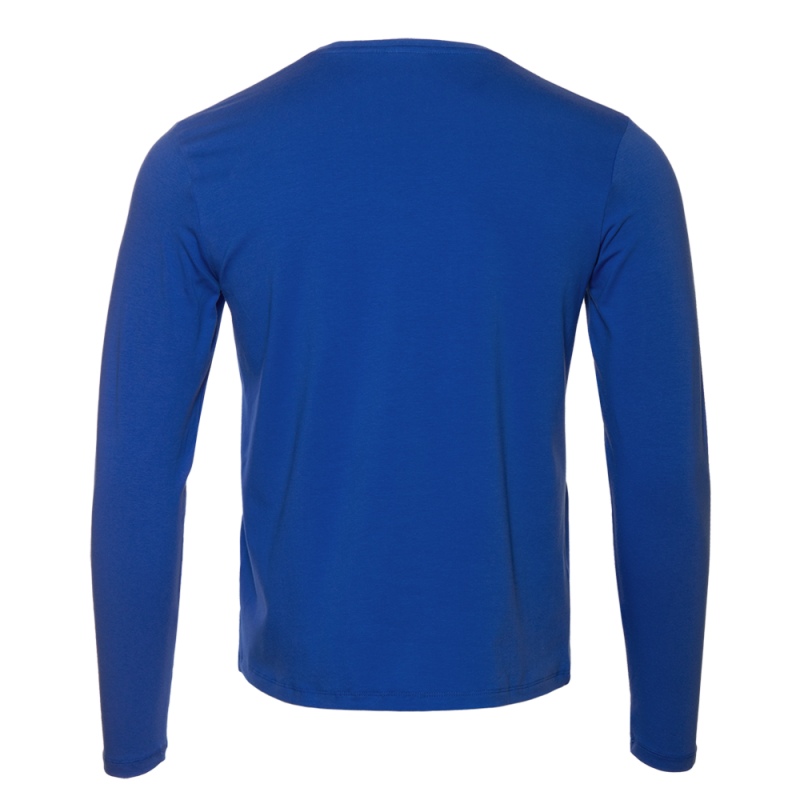 Универсальная футболка прямого силуэта с округлым воротом и длинным втачным рукавом. Плечевые швы и шов горловины усилены настрочной бейкой из основного полотна.