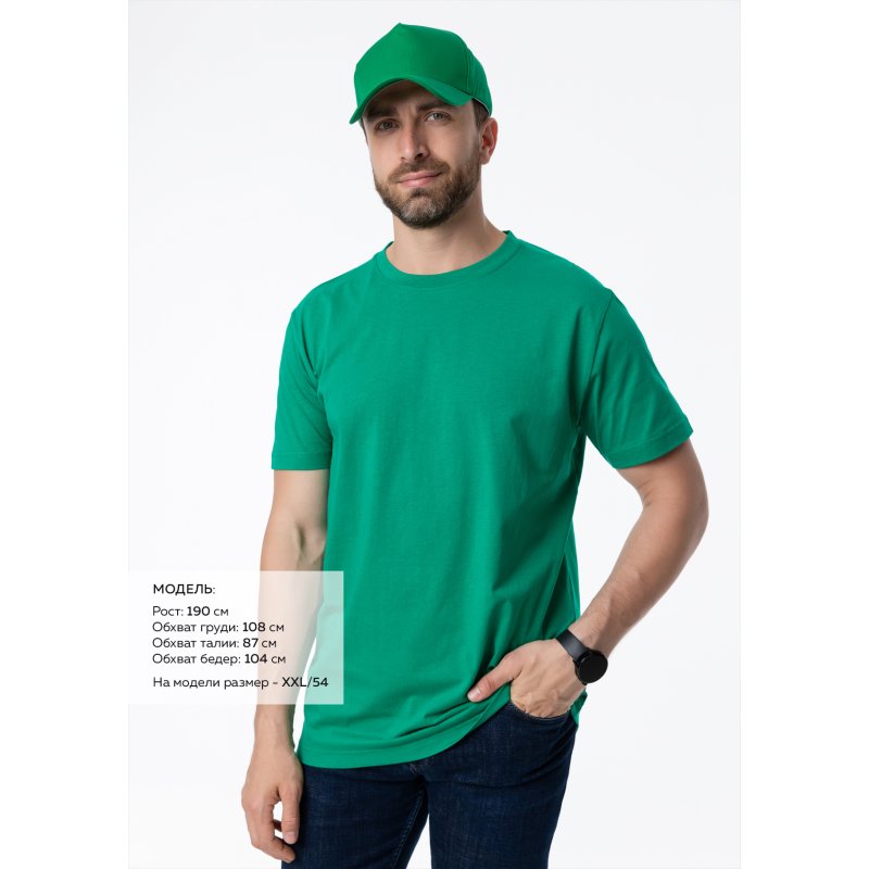 Размер мужской футболки: XXL/54. Параметры модели: рост 190 см.; обхват груди 108 см.; обхват талии 87 см.; обхват бедер 104 см.