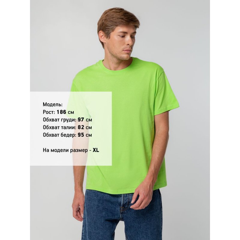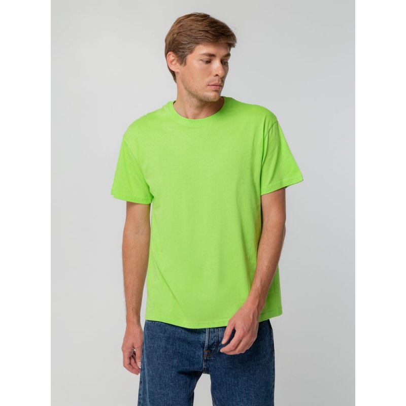 Футболка унисекс прямого силуэта без боковых швов (размеры S–4XL) или с боковыми швами (размер 5XL). Активное крашение полотна — изделие сохраняет цвет надолго.