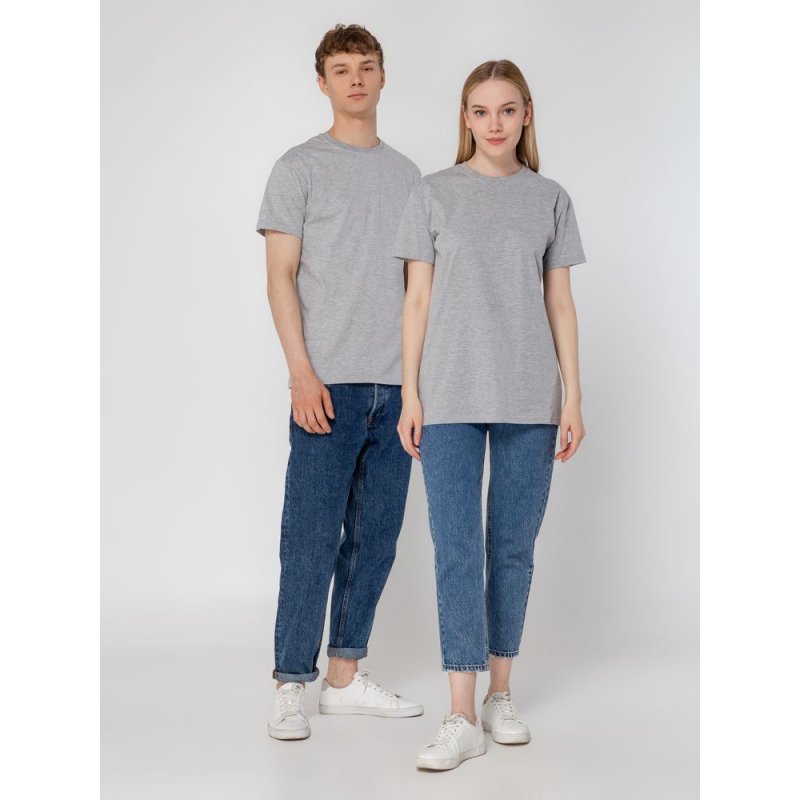 Базовая футболка унисекс прямого силуэта без боковых швов (размеры XS–4XL) или с боковыми швами (размеры 5XL–6XL).