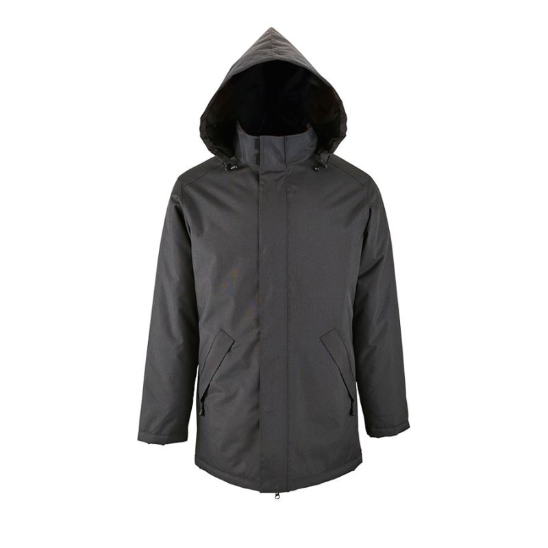 Куртка-парка унисекс на стеганой подкладке ROBYN170Основная ткань «оксфорд»: 100% полиэстер с водоотталкивающей пропиткойСтеганаяподкладка: 100% полиэстерУтеплитель: 100% полиэстер, 170 г м2Температурный режим определяется в зависимости от индивидуальных особенностей человека. Куртка на тонком утеплителе рассчитана на евро-зиму (от 0 до -10 С)Стильная теплая парка унисекс прямого кроя станет необходимой в промозглое осенне-зимнее время года. Благодаря пропитке ПВХ -(PVC) поливинилхлорид, ткань полностью прорезинена внутри, что делает ееводонепроницаемой и формоустойчивой.Куртка на застежке-молнии с двумя пуллерами для удобства открытия и планкой на скрытых кнопках надежно убережет от попадания ветра и влаги. Внутренняяпланка на верхней части куртки обезопасит от прищемления молнией при закрытии.Высокий воротник- стойка (7 см) с внутренней стороны отделан флисом для мягкости и комфорта, а снаружи прячет в себя капюшон на кулиске с резинкой и стопером. Капюшон без утеплителя всегда можно легко достать и разложить, если погода резко испортится, а потом также убрать.Длинные рукава с утеплителем внутри и на застежке-липучке помогут сохранить тепло.2 внешних кармана на молнии и один внутренний на застежке-липучке уберегут небольшие предметы от намокания.Изнутри на стеганной подкладке внизу имеется технологический карман для удобства персонализации.Упакована куртка в прозрачный фирменный пластиковый пакетSol's.Цвет близкий к PANTONE Cool gray 11C