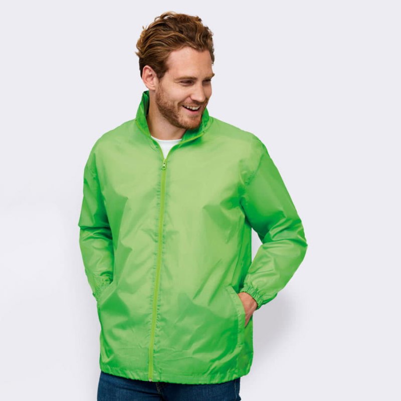 Легкая ветровка унисекс с облегченной пластиковой молнией.Воротник с убирающимся капюшоном.Эластичные манжеты на резинке.Цвет близкий к PANTONE 200С