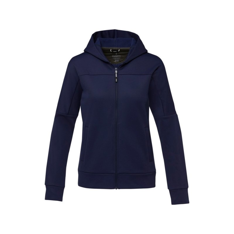 По центру спереди расположена обратная застежка-молния. Карманы спереди. Внутренняя сторона покрыта ворсом. Петля для подвешивания с фирменной символикой. Горловина из атласа. Внутреннее выходное отверстие для медиа с направляющей для шнура. Полумесяц. Главный лейбл нанесен методом термоприклеивания, удобным для размещения рисунков на ткани.