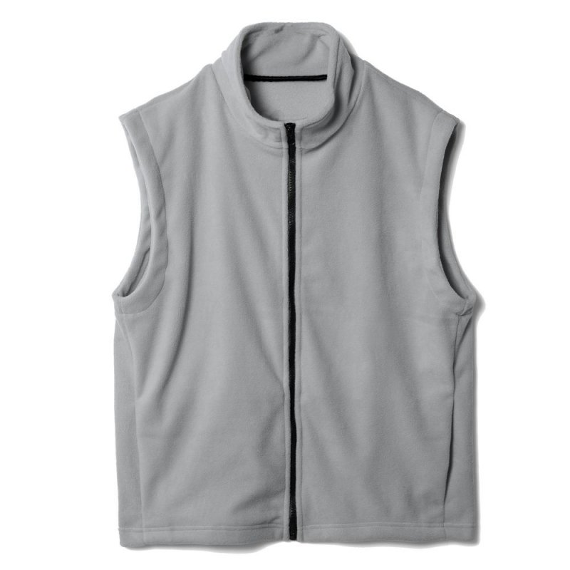 Флисовый жилет унисекс с застежкой-молнией и воротником-стойкой. Укрепляющая тесьма по вороту черного цвета. Два боковых и два внутренних кармана выполнены из сетки.