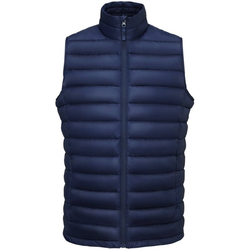Мужской стеганый жилет облегающего кроя на молнии с воротником-стойкой.