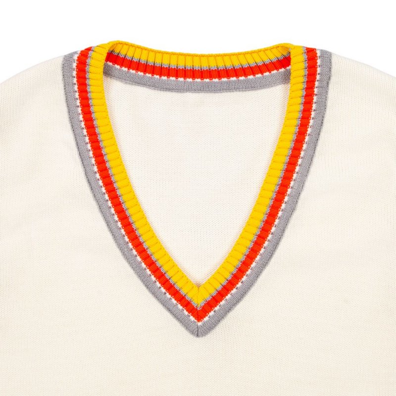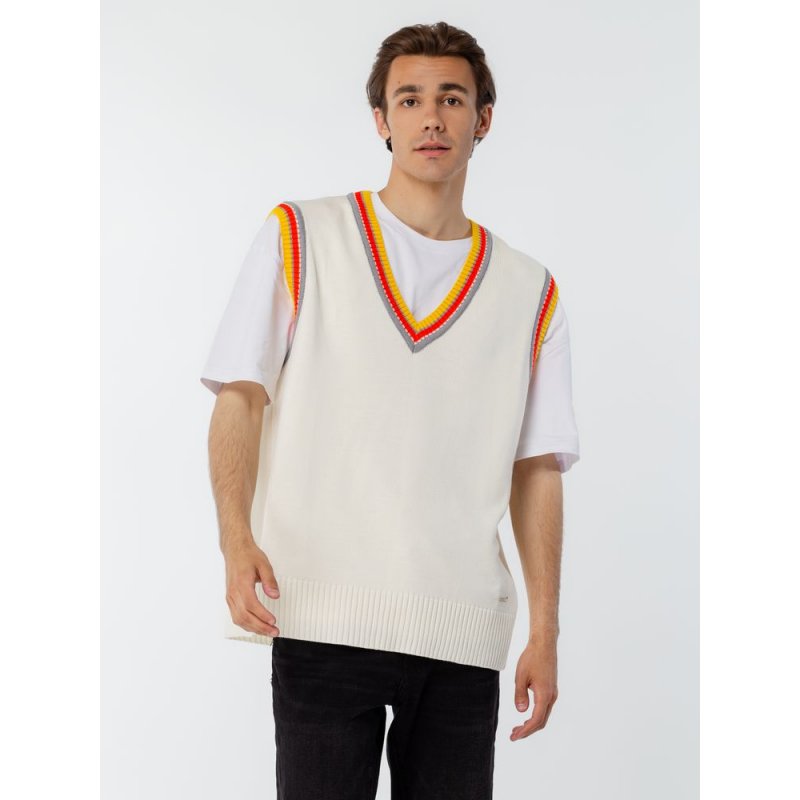 Оверсайз жилет с V-образным вырезом и цветной отделкой.