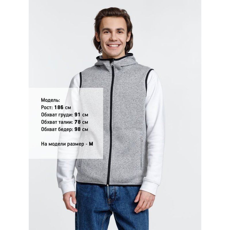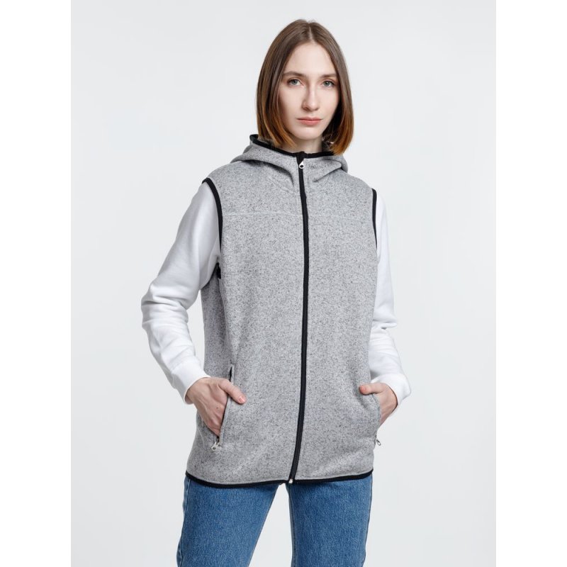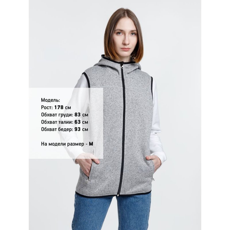 Вязаный жилет унисекс на молнии с капюшоном.