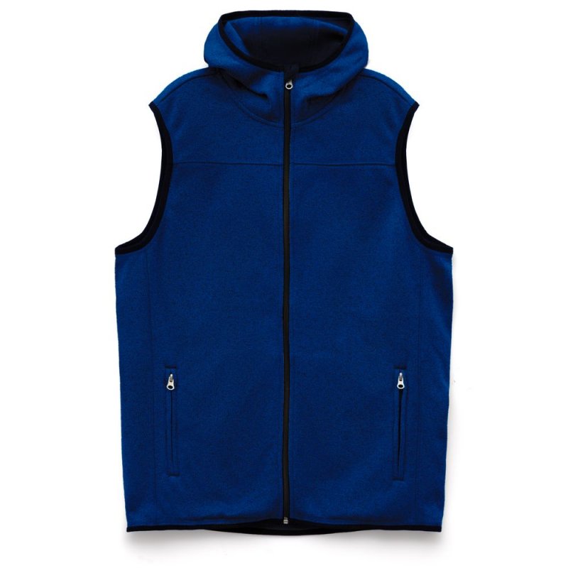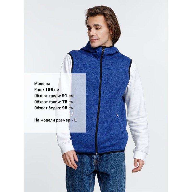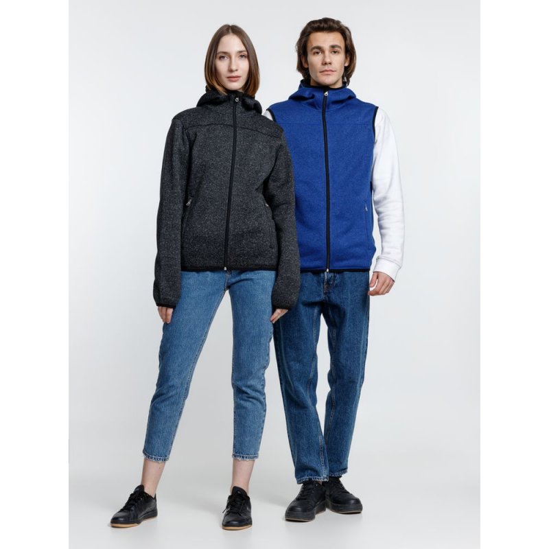 Вязаный жилет унисекс на молнии с капюшоном.