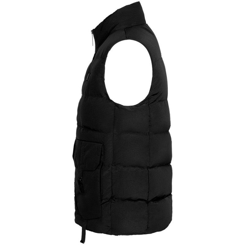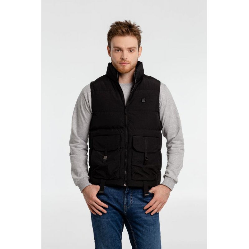 - Утепленный жилет на молнии с воротником стойкой и 2 наружными карманами