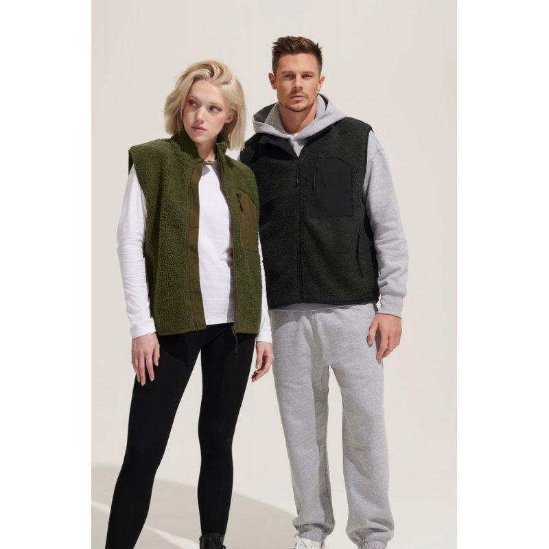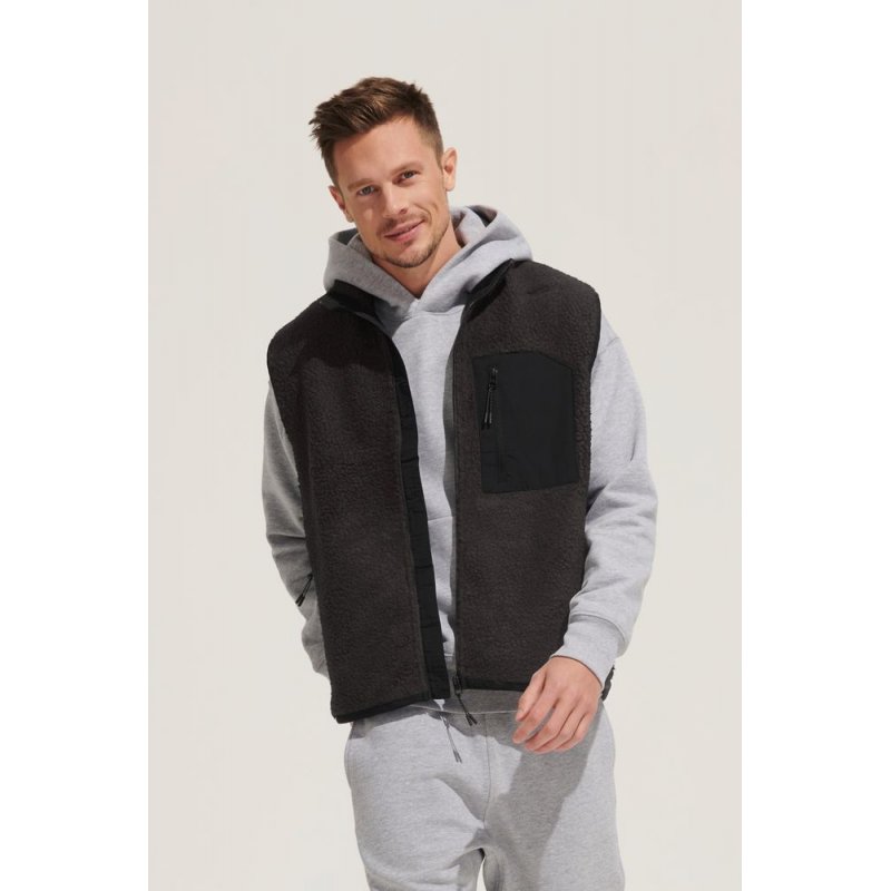 Жилет унисекс из фактурной искусственной шерпы с гладкой отделкой из таслана.