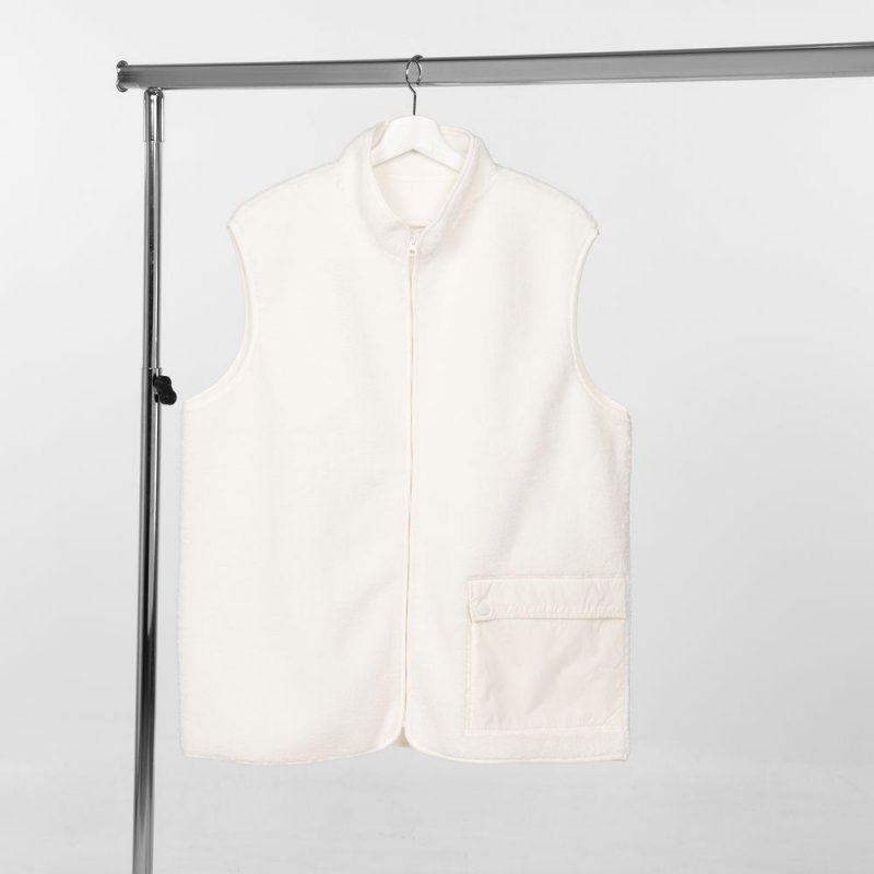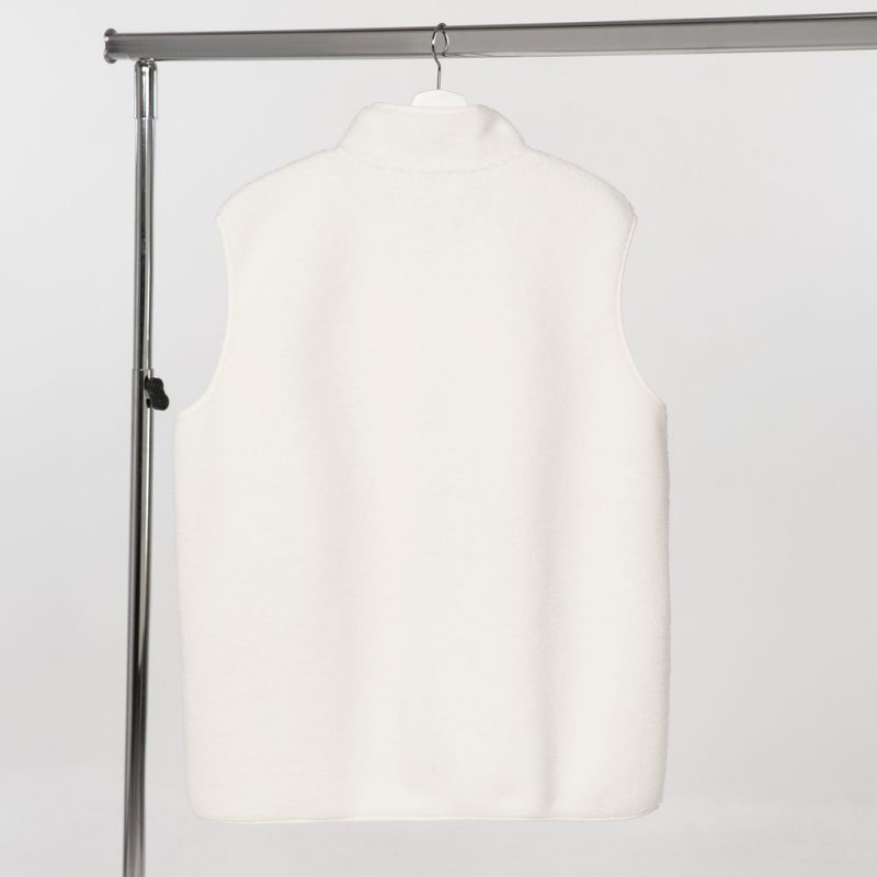 Жилет на молнии из современного двухслойного материала — модный искусственный мех снаружи и уютный флис внутри. Накладной карман из гладкого нейлона создает заметный визуальный контраст и делает жилет Oblako по-настоящему стильным предметом гардероба.