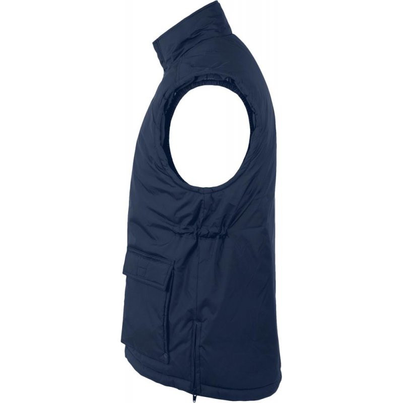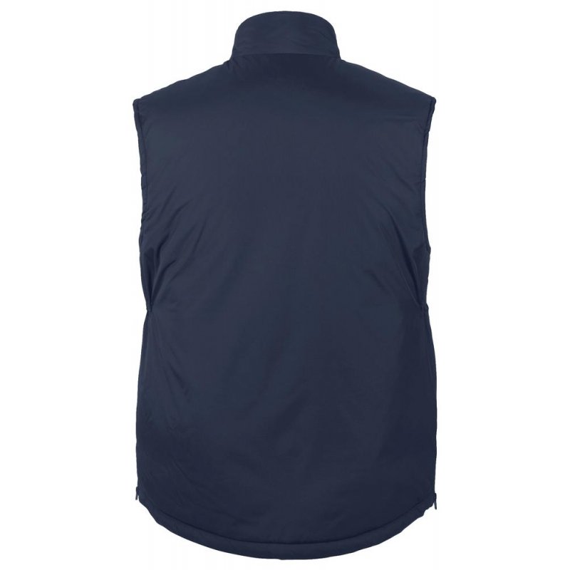 Жилет унисекс из ткани «рипстоп». Высокий воротник на кнопках, на подкладке из флиса. Расстегивается при помощи молнии и кнопок.