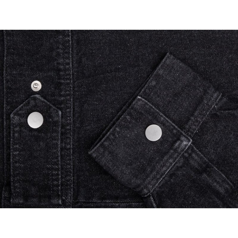 Джинсовая куртка унисекс на кнопках свободной посадки.