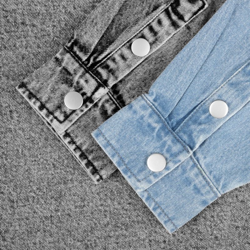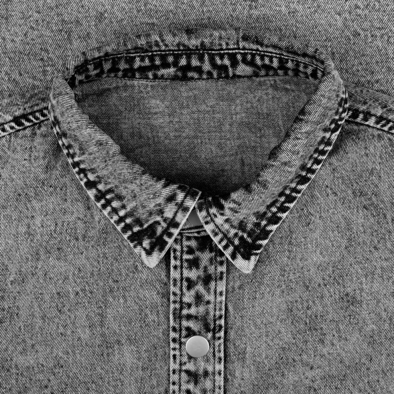 Джинсовая куртка-рубашка унисекс на кнопках прямого силуэта.