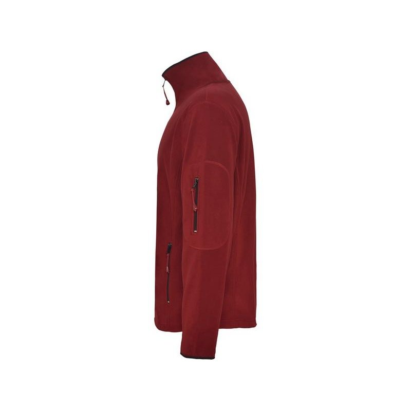 Куртка из микрофлиса с высоким воротом. Контрастная центральная молния, боковые карманы на молнии, декоративная молния на левом рукаве, отделка резинкой по краю рукавов. Налокотники из основного материала.