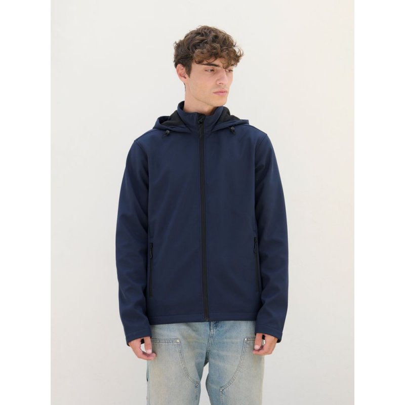 Мужская куртка софтшелл на молнии и с капюшоном.