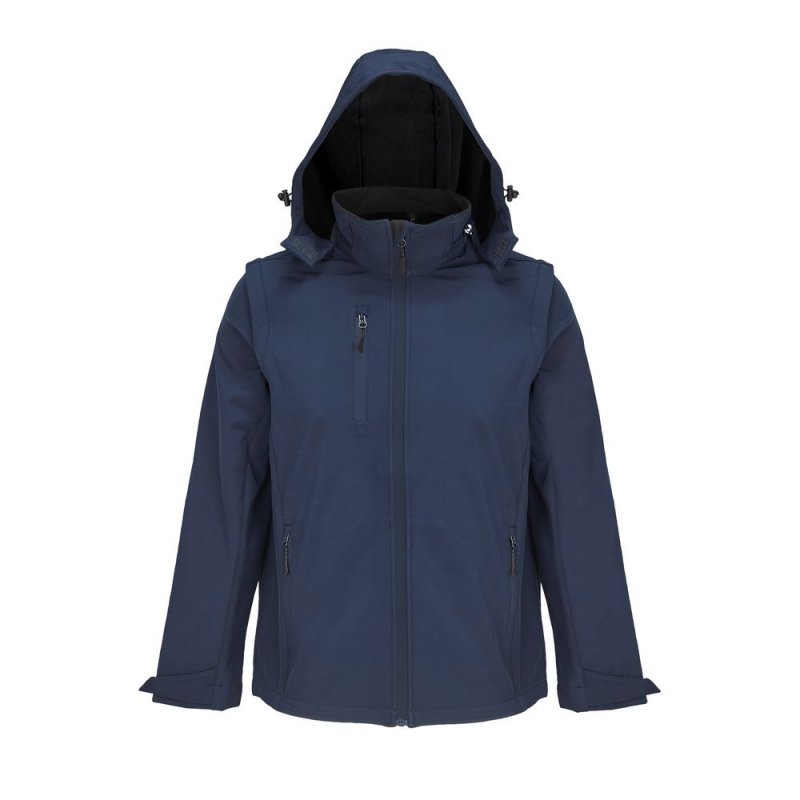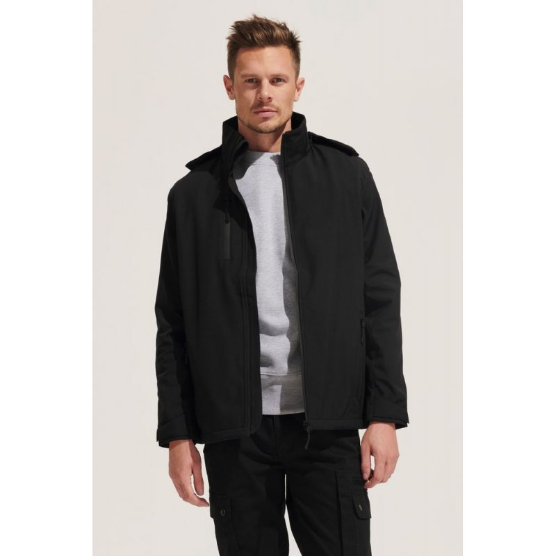 Влагоустойчивая и ветрозащитная куртка-трансформер из материала Softshell, выполненного из переработанного полиэстера. Отстегивающиеся рукава и капюшон позволяют выбрать ту конфигурацию, которая больше всего соответствует погоде за окном.
