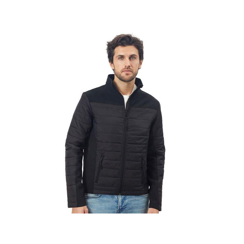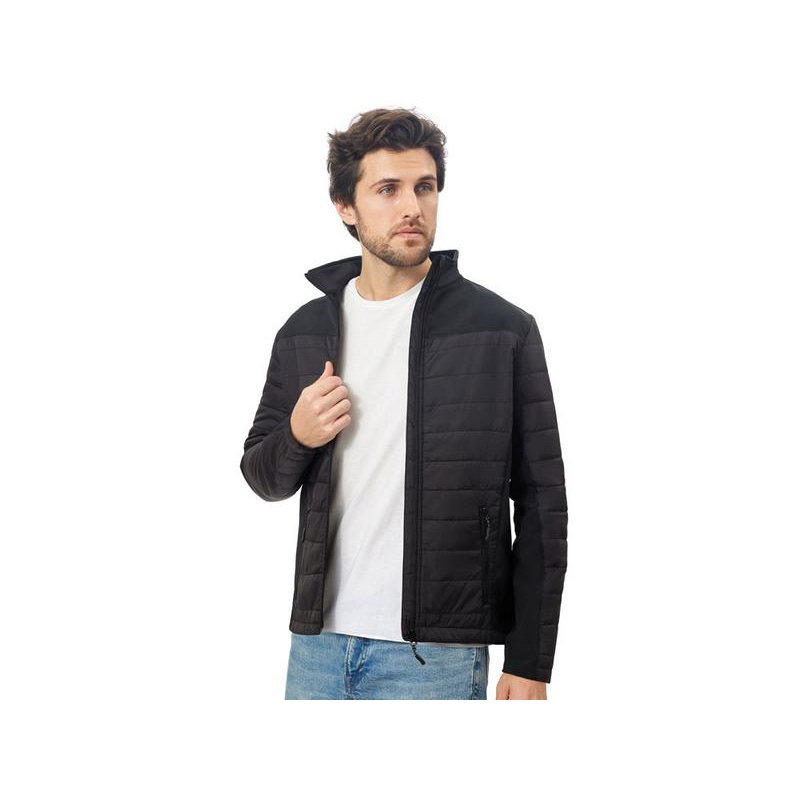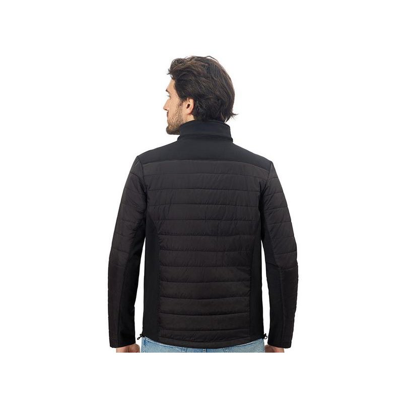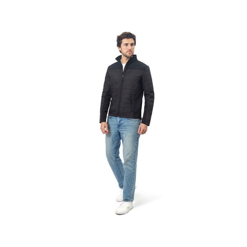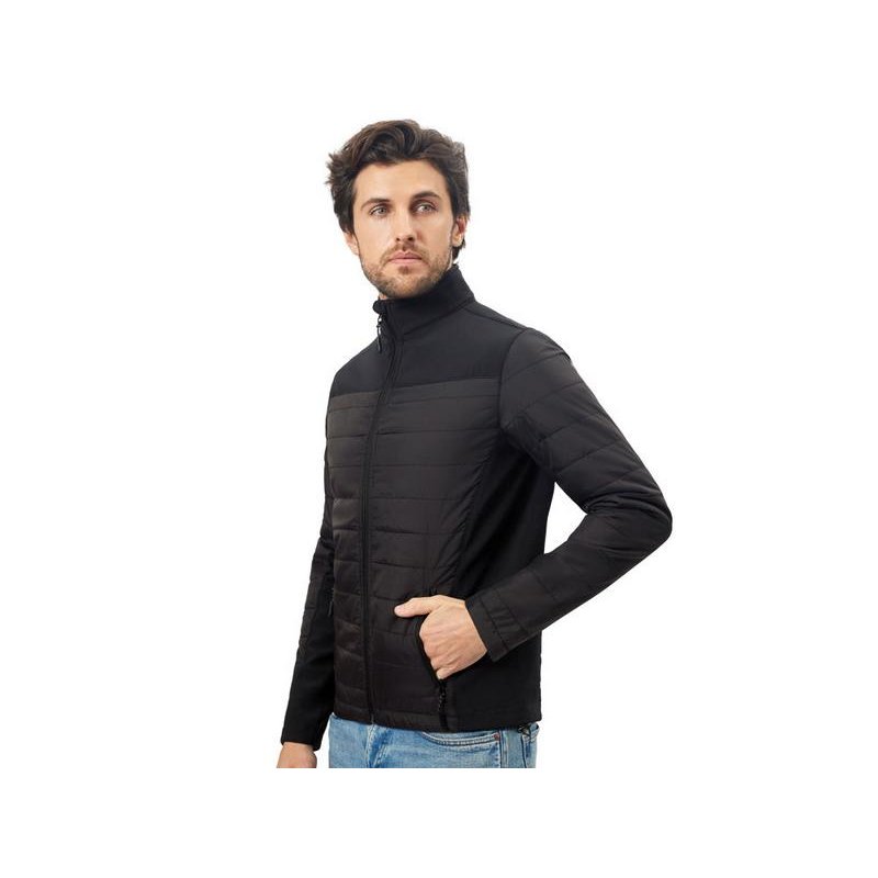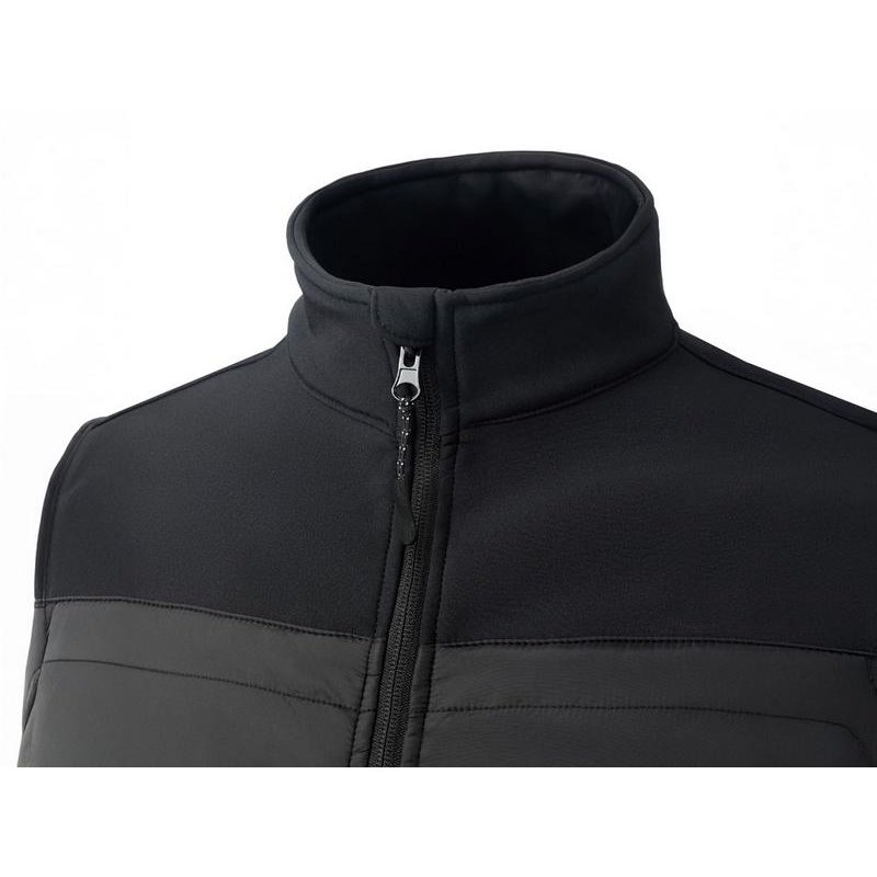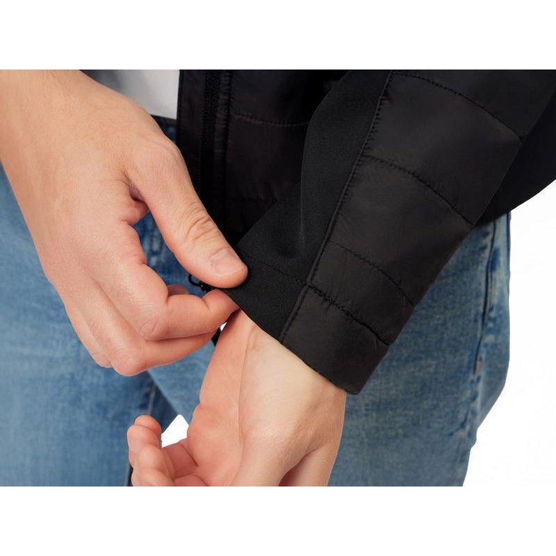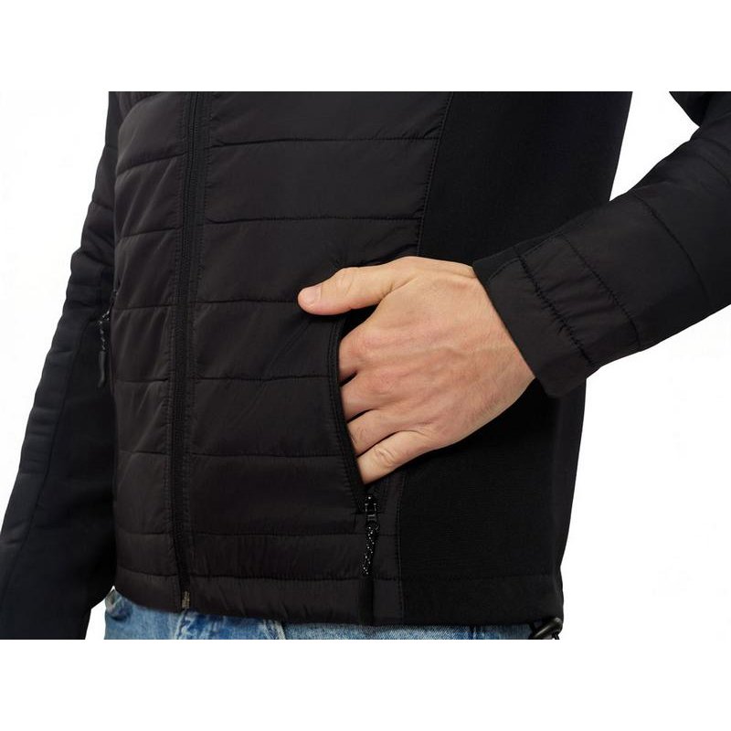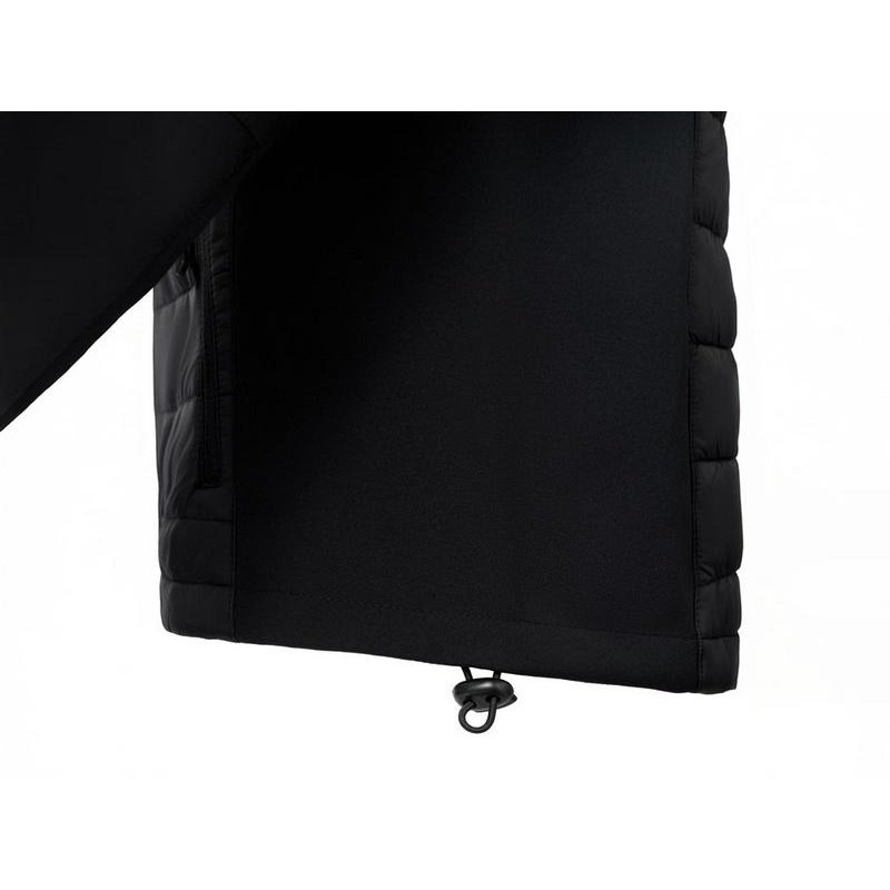 - гибридная конструкция из 2 видов материалов – софтшелл гарантирует ветронепроницаемость и легкость, а стеганные вставки добавляют утепления.