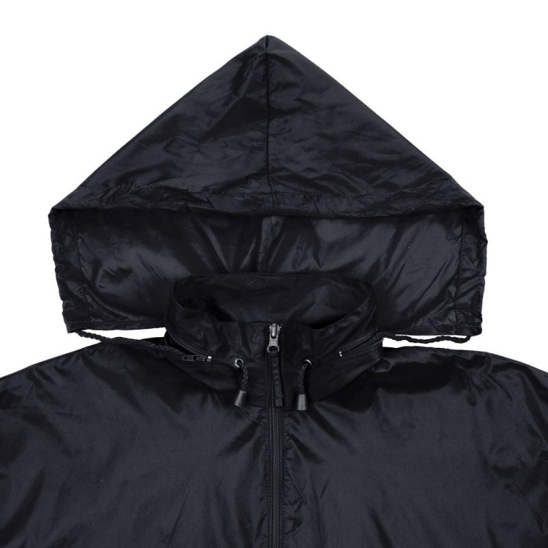 - Карман куртки служит сумочкой для нее: при необходимости ветровку можно компактно сложить, застегнуть карман на молнию и использовать пришитую эластичную тесьму, чтобы носить сложенную ветровку с собой на поясе