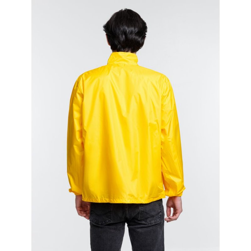 Тонкая гладкая ткань дюспо с притягательным матовым блеском почти бесшумна в использовании и пригодна для большого количества цветов печати. Качественный пошив ветровки добавляет ей презентабельности и гарантирует долгое использование, а яркий цвет привлекает внимание и не выгорает со временем.