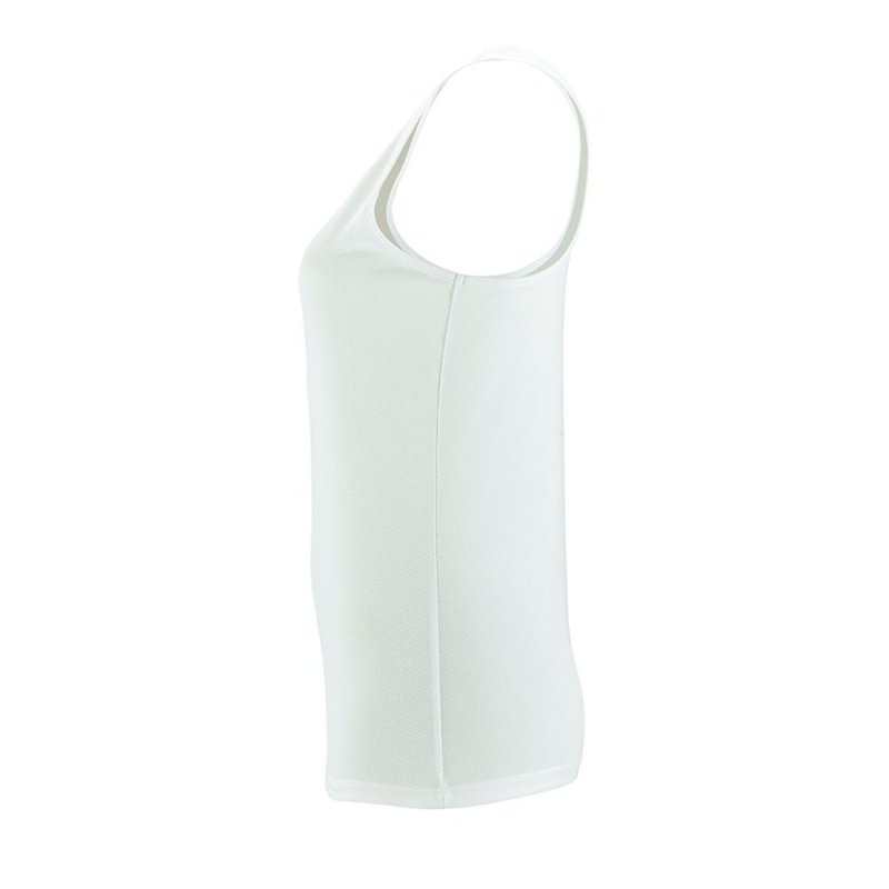 Майка приталенного кроя из спортивной сетки. Горловина и проймы обработаны бейкой.