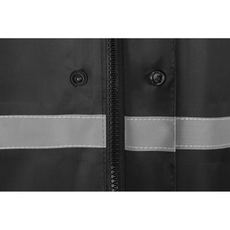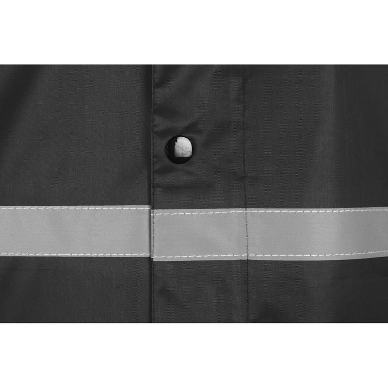 Светоотражающая тесьма на груди и спине делает человека в плаще заметным даже в темное время суток. Вместительные накладные карманы защищены сверху клапаном.