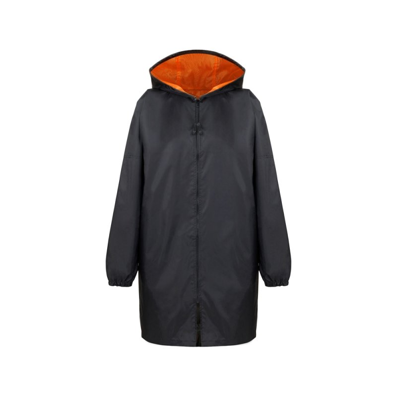 Стильный и практичный дождевик, созданный для активного образа жизни и эффективного промо. Его двусторонний дизайн сочетает простоту и яркость: черная сторона — для повседневной сдержанности, цветная — для привлечения внимания. Изготовлен из легкого, но плотного водоотталкивающего материала, который не теряет форму в непогоду.