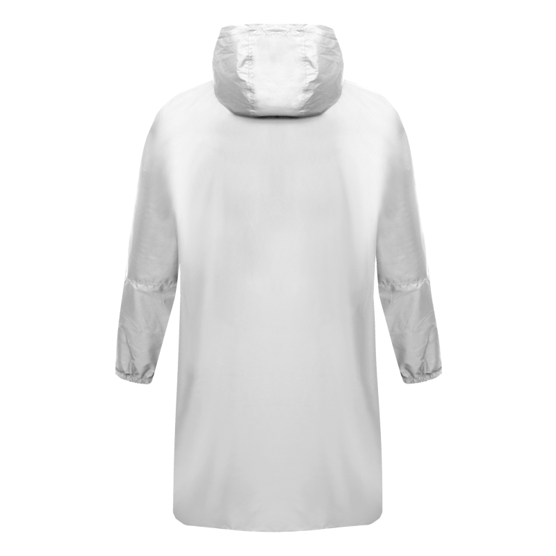 Цельнокроеный дождевик прямого силуэта со спущенным плечом, застежкой на молнию и глубоким прорезным карманом. Для дополнительной защиты от ветра и дождя капюшон дополнен кулисой с резинкой на фиксаторе, а манжет рукава укреплен эластичной резинкой.