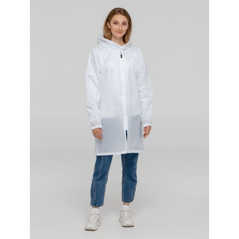 Плащ-дождевик из ткани таффета на молнии с капюшоном. Складывается в мешочек — удобно брать с собой.