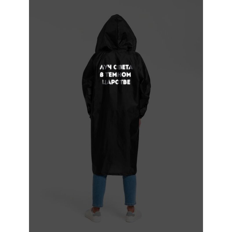 Дождевик для позитивных людей, которые озаряют этот мир своим присутствием! Луч света в темном царстве — светоотражающий принт. Хорошо видимый в темное время, он убережет вашу светлую личность от проблем на дороге.