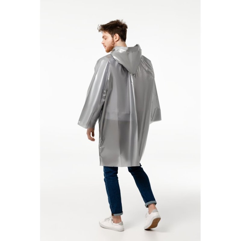 Дождевик-плащ с капюшоном и длинным рукавом из плотного полиэтилена высокого давления (ПВД).