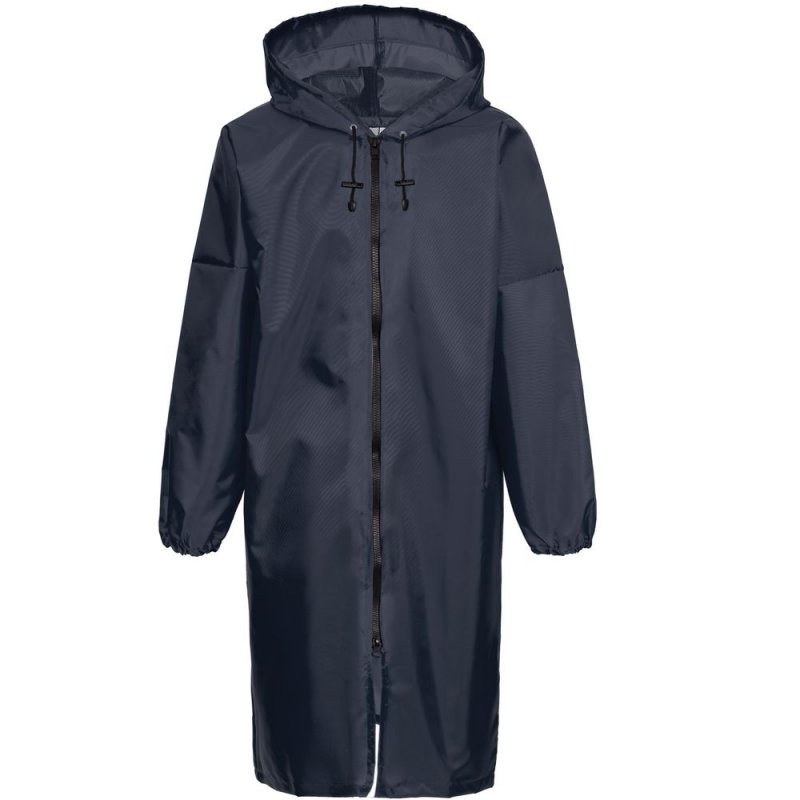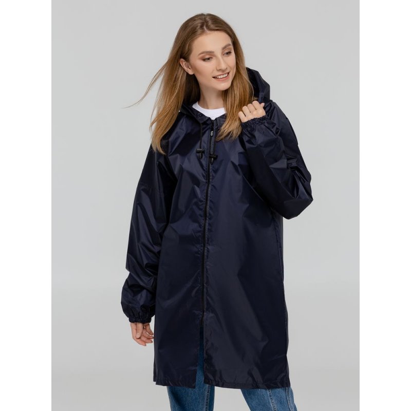 Плащ-дождевик из ткани таффета на молнии с капюшоном. Складывается в мешочек — удобно брать с собой.