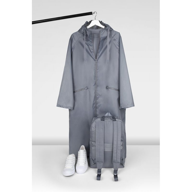 Плащ-дождевик на молнии с капюшоном из ткани таффета с полиуретановой пропиткой для защиты от сильного дождя.