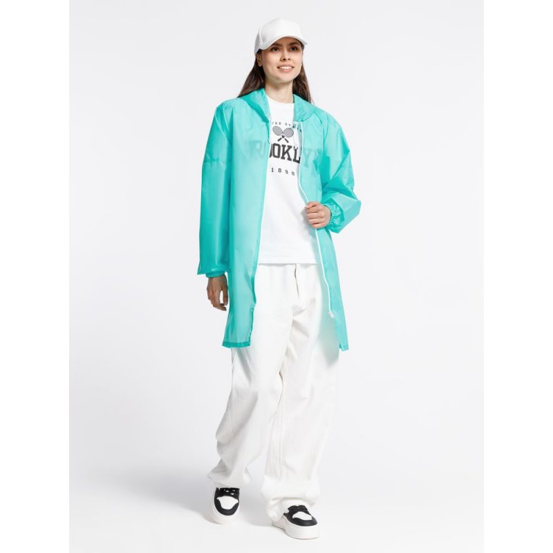 Плащ-дождевик из ткани таффета на молнии с капюшоном. Складывается в мешочек — удобно брать с собой.