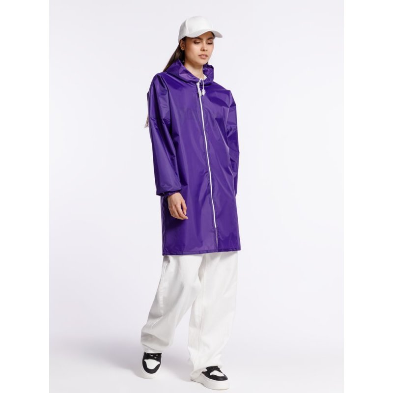 Плащ-дождевик из ткани таффета на молнии с капюшоном. Складывается в мешочек — удобно брать с собой.