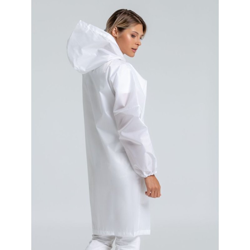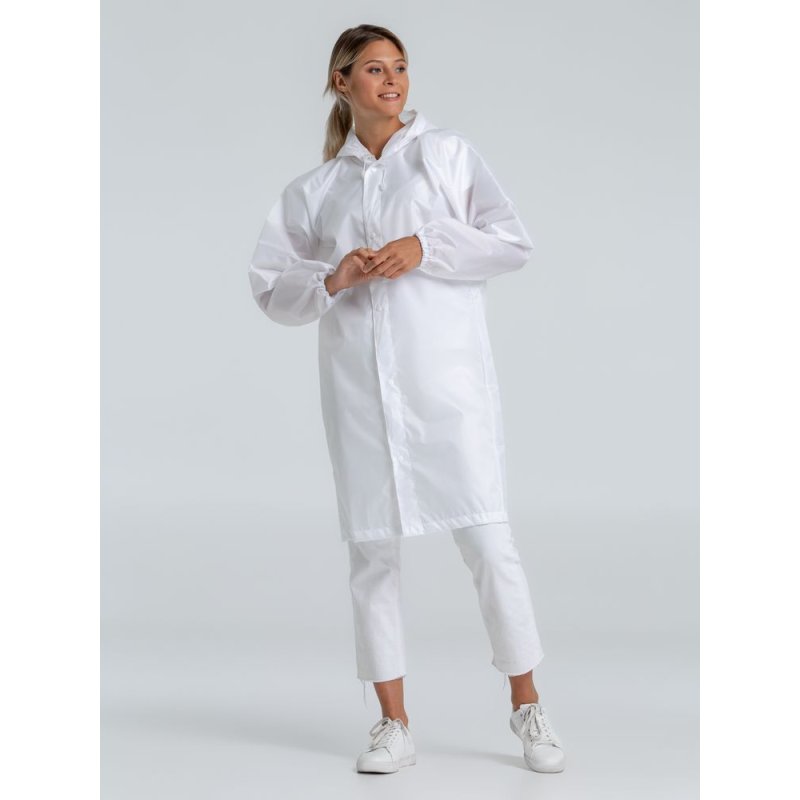 Плащ-дождевик из тканиоксфорд на кнопках с капюшоном.