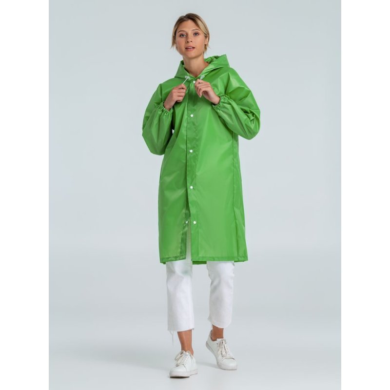 Плащ-дождевик из тканиоксфорд на кнопках с капюшоном.
